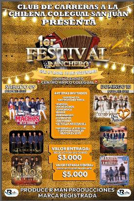El Sábado 9 y Domingo 10 de Diciembre se realizará el 1er Festival Ranchero en Colegual San Juan en el Centro Hípico Colegual, en la comuna de Llanquihue, región de Los Lagos.